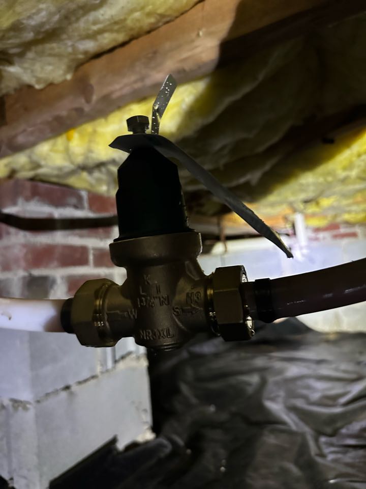 Installed 3/4” PEX pressure reducing valve (PRV) to help regulate water pressure and protect plumbing system.